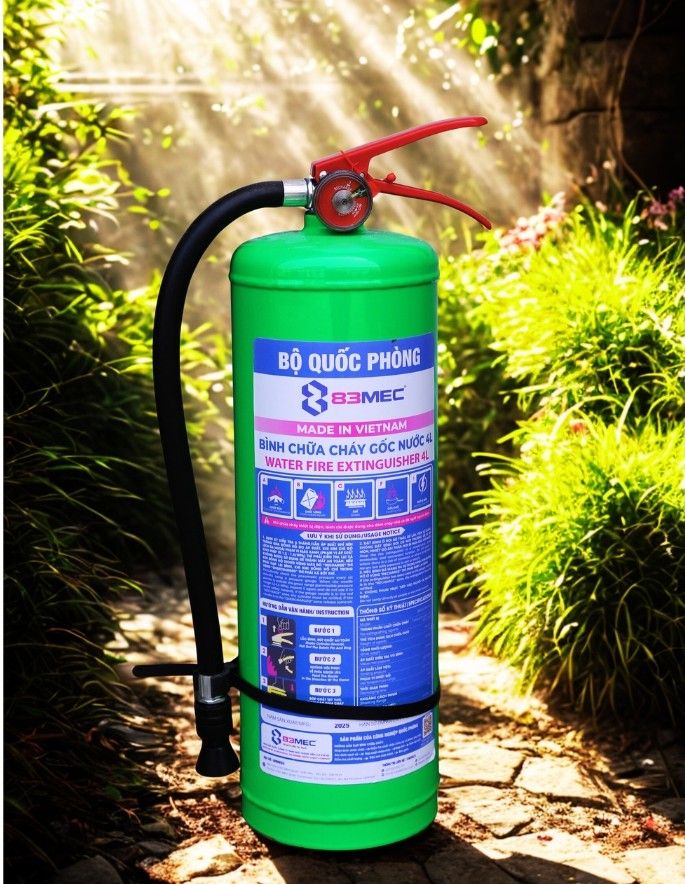 Bình chữa cháy gốc nước được sản xuất theo tiêu chuẩn TCVN bởi 83MEC – đơn vị trực thuộc Bộ Quốc Phòng, đảm bảo chất lượng cao, hiệu suất ổn định và độ an toàn tuyệt đối trong quá trình sử dụng.